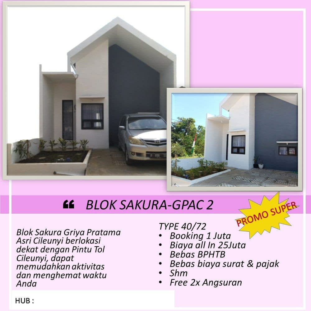 Hanya dengan Booking SEJUTA saja, Anda dapat memilih unit Rumah Impian anda