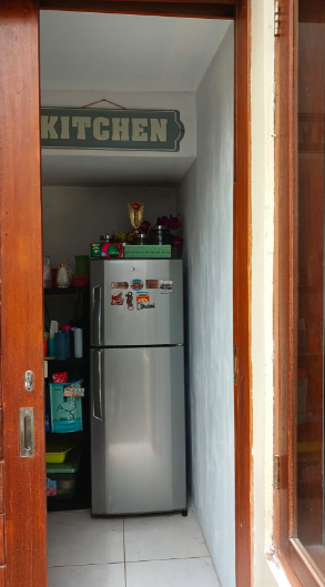 Peralatan Modern: Rumah ini dilengkapi dengan perangkat elektronik utama, termasuk kulkas, memberikan pengalaman hidup tanpa gangguan.