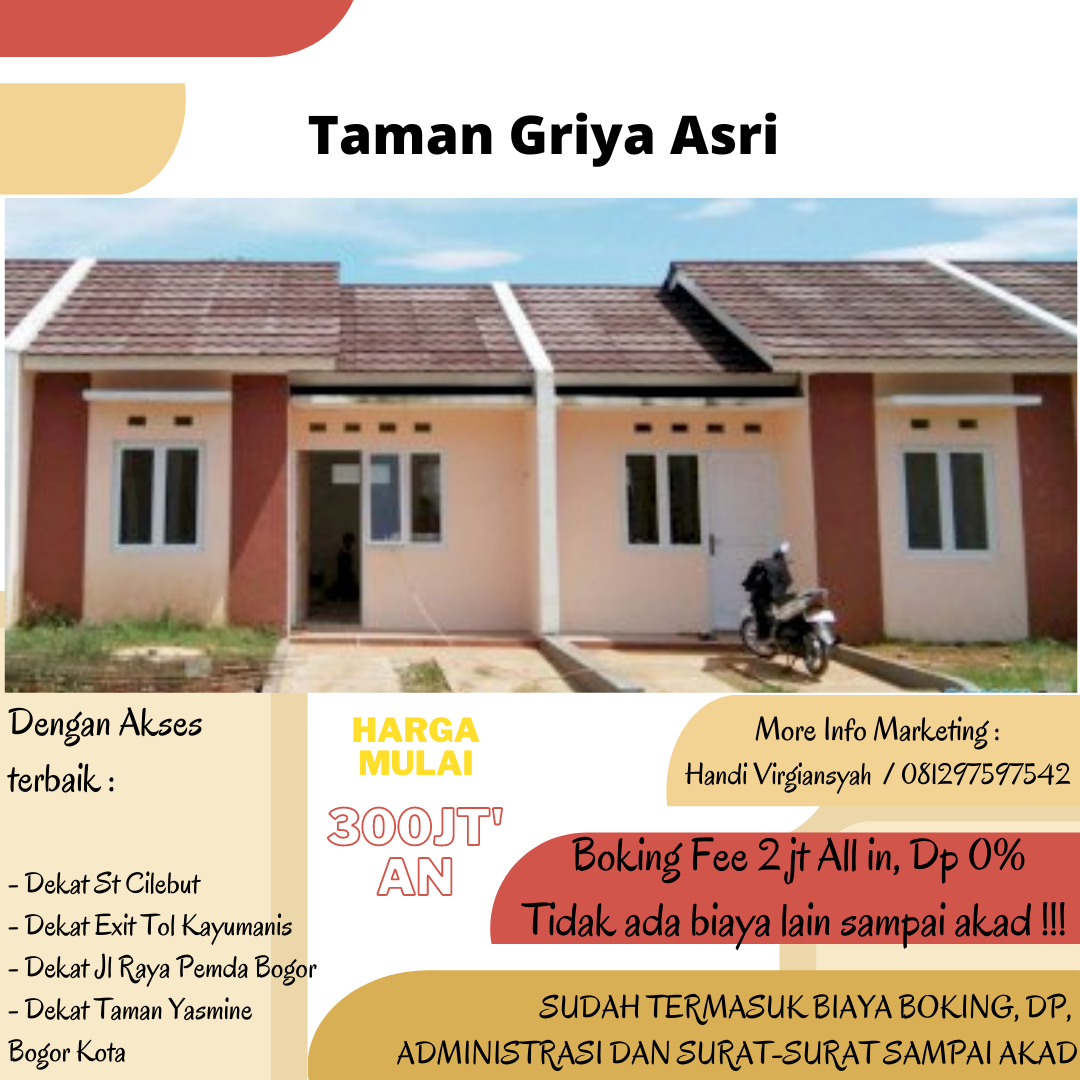 Yuk kita check rumah yang dekat dengan semua akses di kota bogor, di tambah banyak tamabahan dan promo yang mengiurkan yang bikin kita mudah untuk dapet punya rumah, Di mana lagi kalau bukan di Taman Griya Asri Cilebut,