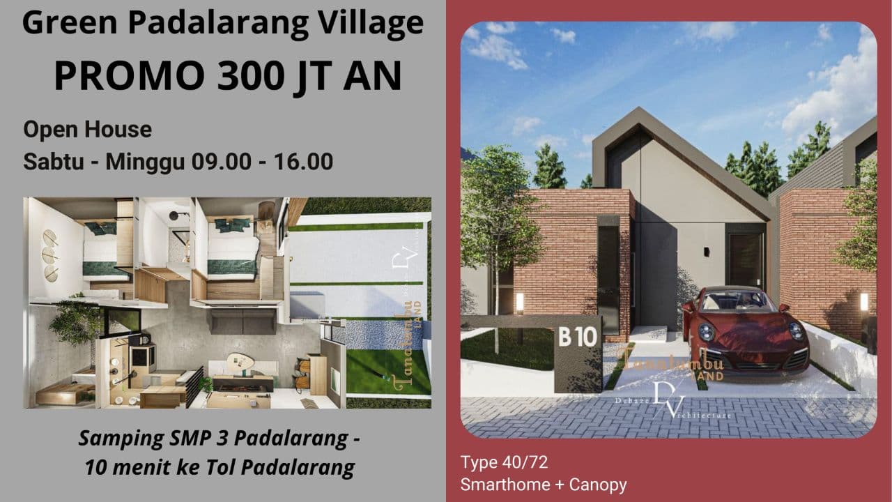 Promo mulai 375 jt untuk type 40/72 untuk satu lantai.