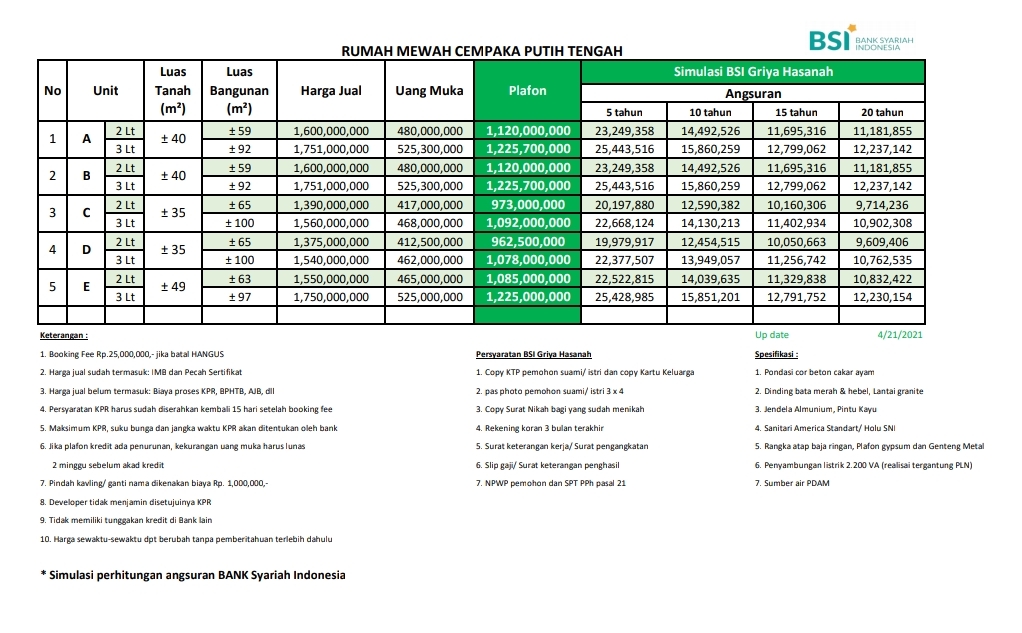 Dinding bata merah & hebel, lantai Granit
