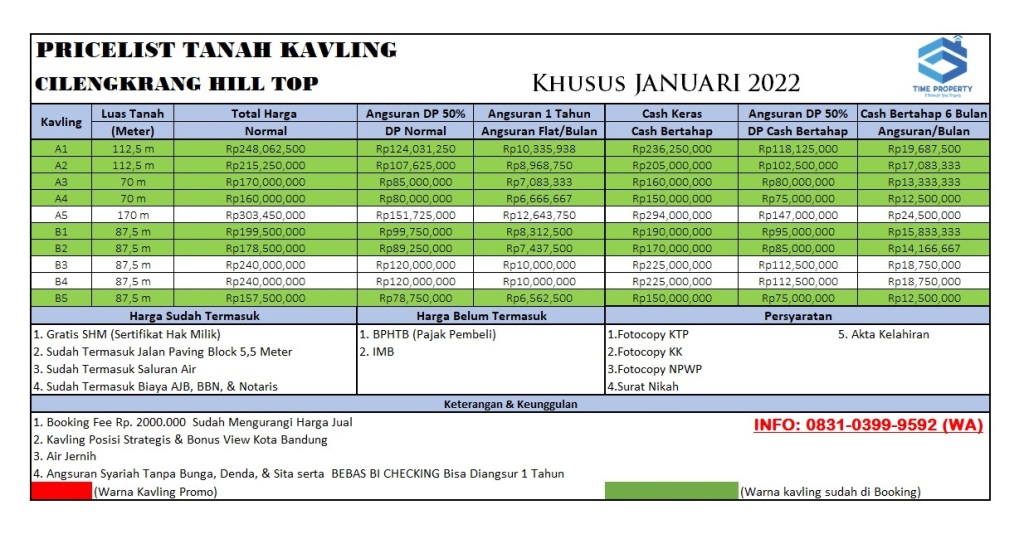 Kavling yg available: