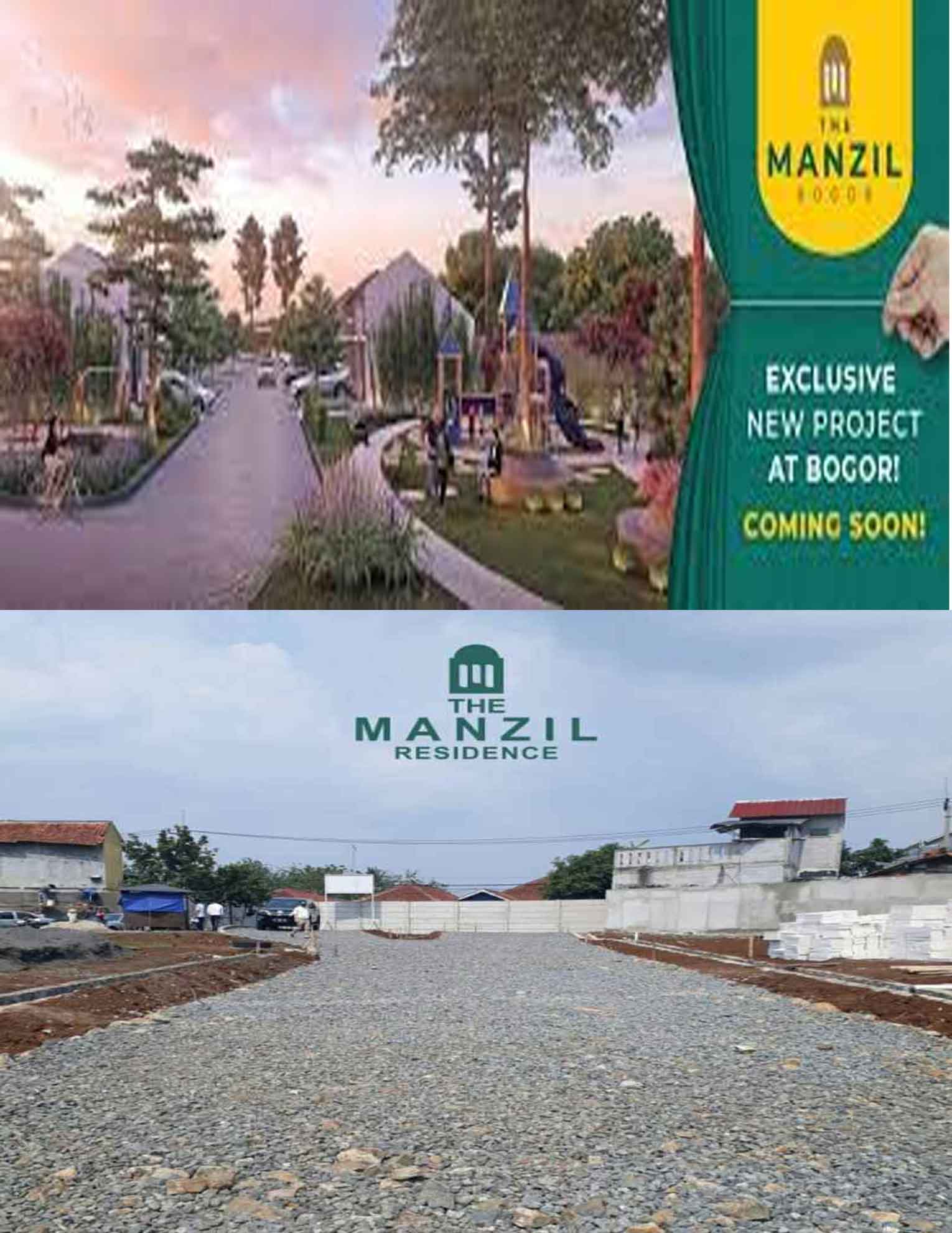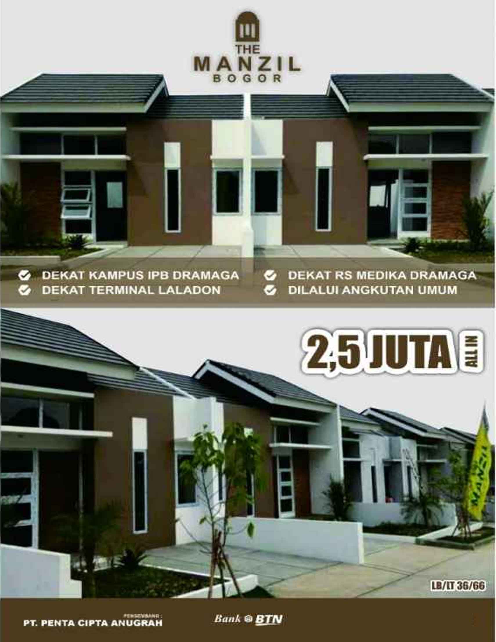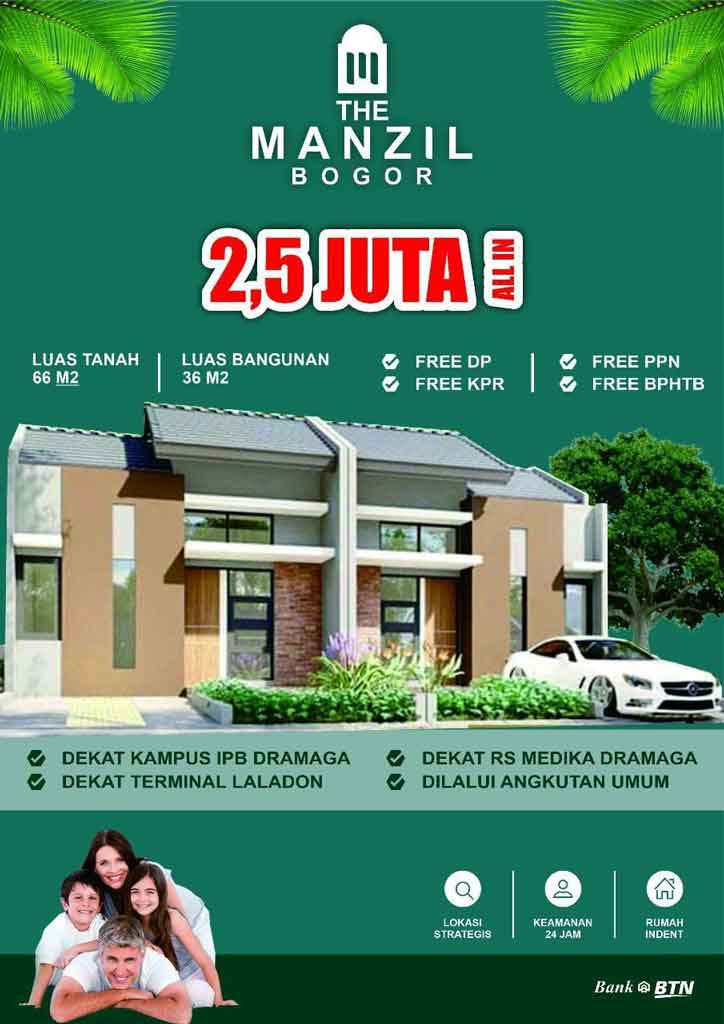 Mulailah kehidupan baru kamu yang berkualitas di The Manzil Bogor. Sebuah proyek perumahan baru yang asri, nyaman dan bebas banjir dikota Bogor. Hunian impian untuk anak - anak tumbuh dan berkembang, tujuan pulang kerja, tempat berbagi kasih sayang, menumpahkan kesedihan dan yang paling utama tempat berindung serta istirahat paling nyaman. Berlokasi di Jalan Raya Ciherang - Dramaga. RS Karya Bhakti Pertiwi dan Kampus Institut Pertanian Bogor / IPB Dramaga. Hanya memerlukan waktu 15 - 20 menit menuju Toll Bogor Outer Ring Road (BORR), Memerlukan waktu 15 - 20 menit menuju stasiun Bogor, RS Hermina, RSIA Bunda Suryati, Kampus Universitas Nusa Bangsa, Universitas Ibnu Khaldun, dan Universitas Terbuka Bogor. Dan memerlukan waktu 20 menitan menuju Transmart Yasmin, Plaza Indah Bogor, dan Bogor Square.